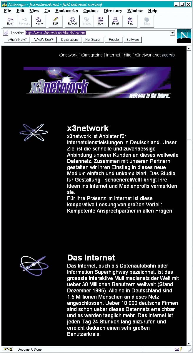 x3network.net. welcome to the future. x3network war einer der ersten Internet